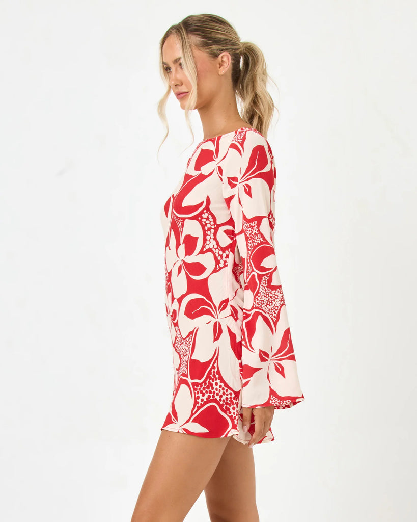 The All I Need Dress is your easy yes for warm days and lingering nights. Cut on the bias for that perfectly draped fit, this printed crepe mini dress flatters with its fluid silhouette and wide neckline. A delicate keyhole with tie detail at the back adds a hint of charm, while the unlined finish keeps things light and easy. Flirty, feminine, and made to move with you—this is the dress you'll keep reaching for, season after season.