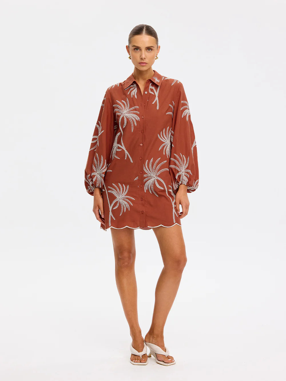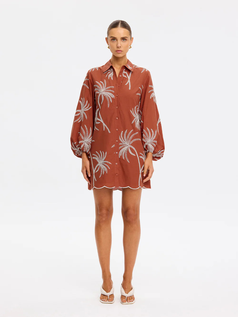 The Amaya Mini Dress is a relaxed silhouette featuring kimono-style sleeves and a button-through front, finished with a removable waist tie for optional shape. Perfect for beachside lunches, weekend outings, warm-weather getaways.