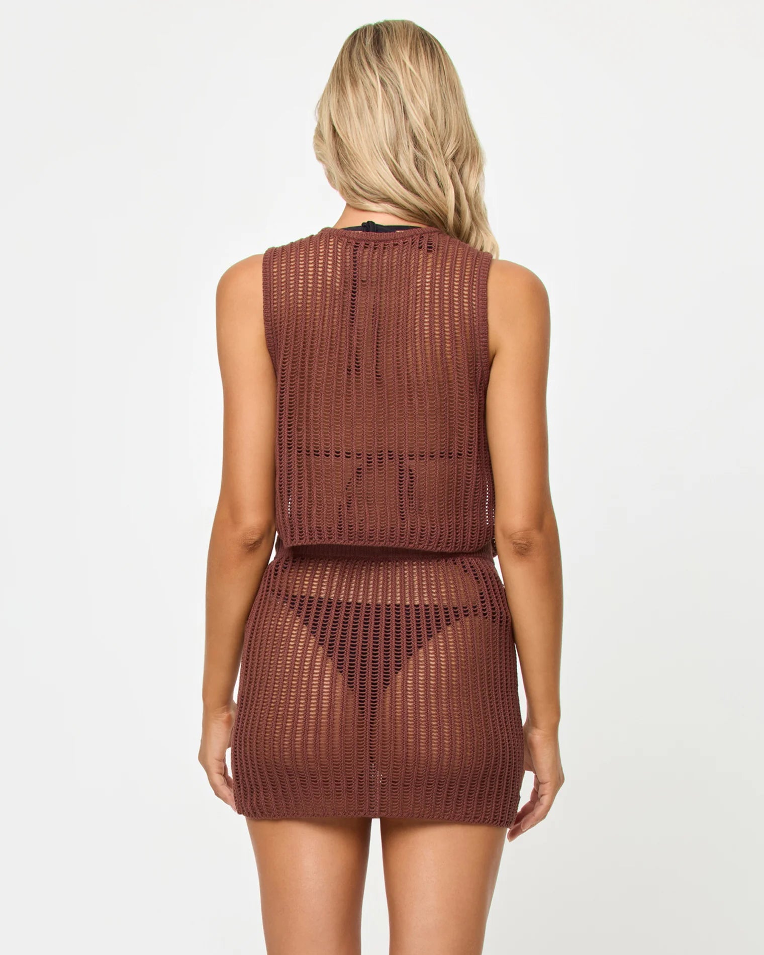 Crochet never goes out of style. The Sander Top has a flattering cropped hemline with a sleeveless silhouette. Style this with the matching skirt for a cohesive look, or wear alone over a bikini.