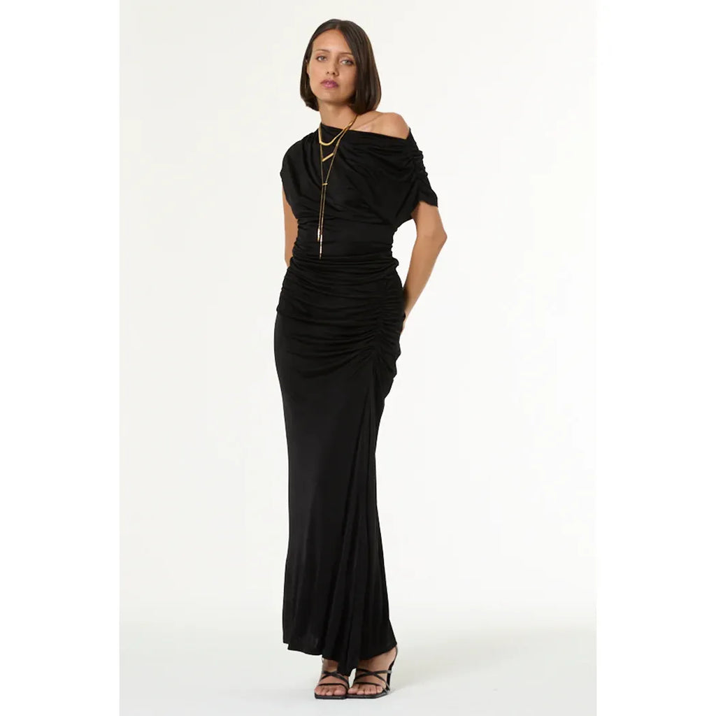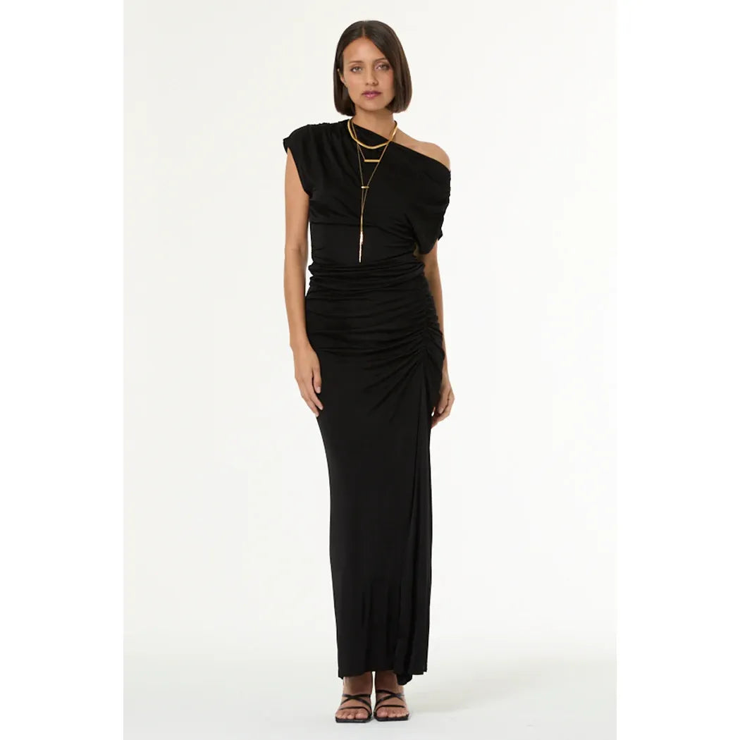 The Shira Skirt brings fluid elegance to every occasion. Draped and softly ruched to create gathering around the hips, this maxi skirt falls effortlessly to the floor with a graceful, relaxed movement. A versatile piece that transitions seamlessly from vacation evenings to holiday events.
