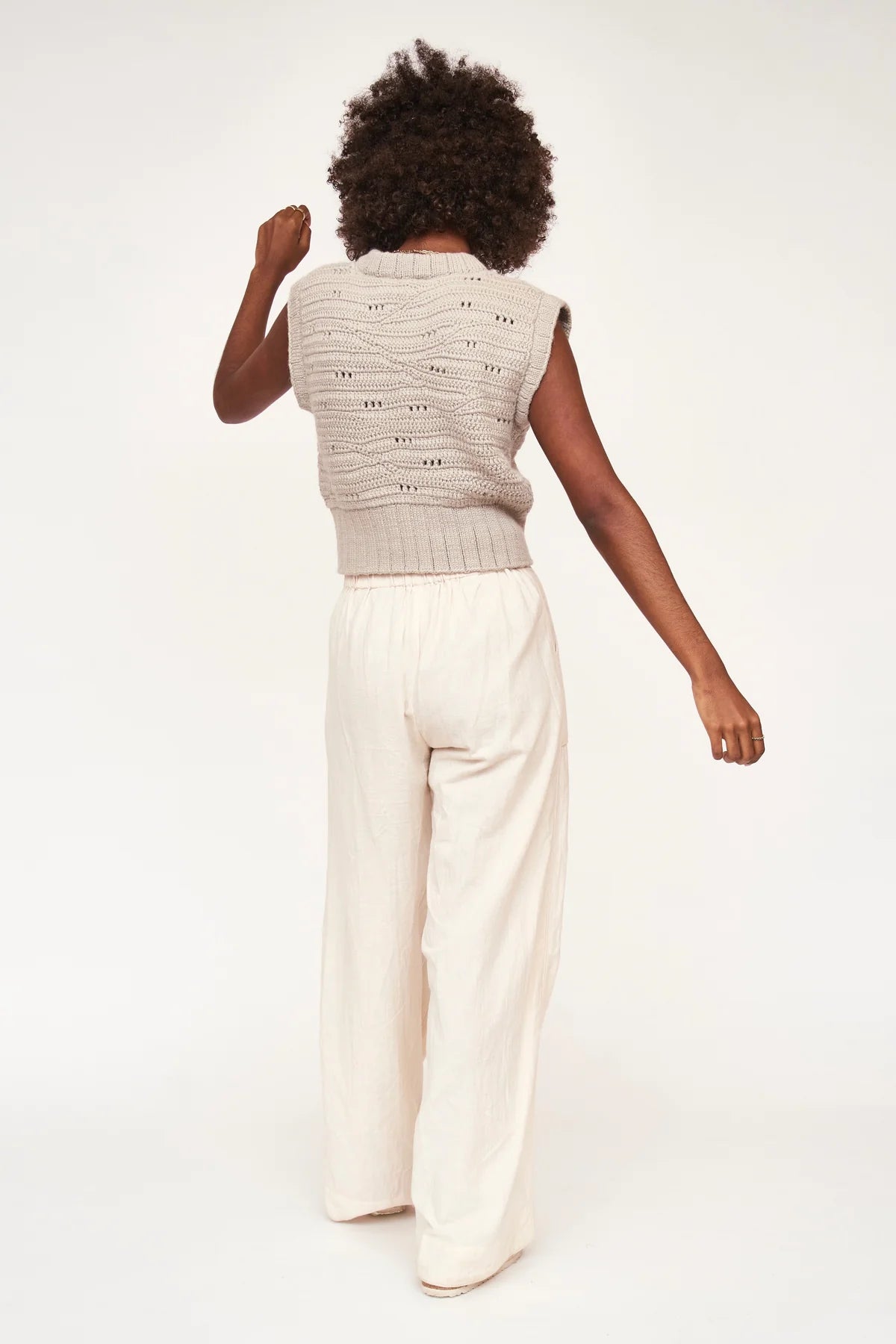 “Kitties,” or bits of the environment caught in the fibers, are inherently part of the fabric and aren’t seen as defects but rather add to the character of the fabric.